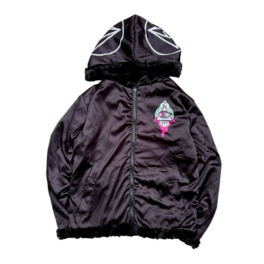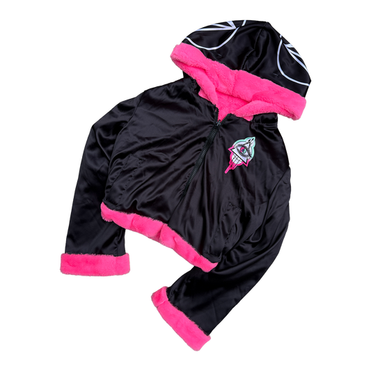 Seismic Minds Eye Fur Coat (Black/Pink) (Cropped)
